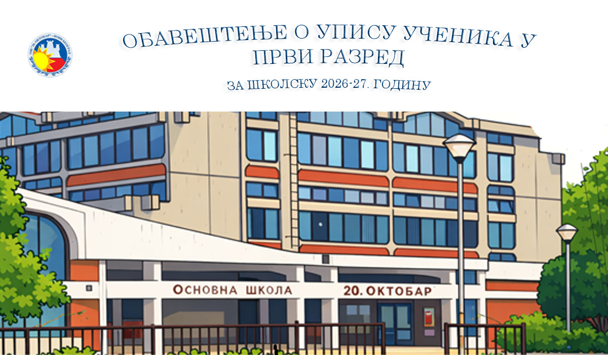 ОБАВЕШТЕЊЕ О УПИСУ УЧЕНИКА У ПРВИ РАЗРЕД ЗА ШКОЛСКУ 2026/2027. ГОДИНУ